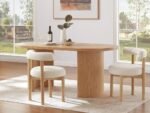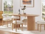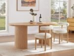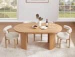 This contemporary dining set is designed to bring elegance and comfort to your home. The rectangular wooden dining table features a ribbed panel base and a smooth finish, combining durability with modern style. Accompanied by six upholstered chairs with curved backs and cushioned seats, the set provides both support and sophistication, making it perfect for everyday meals or special gatherings.