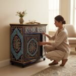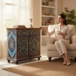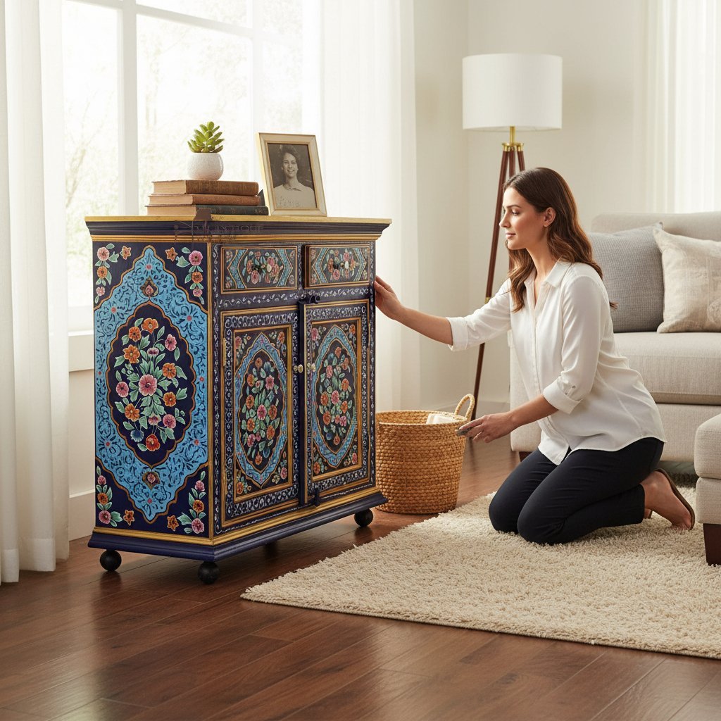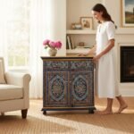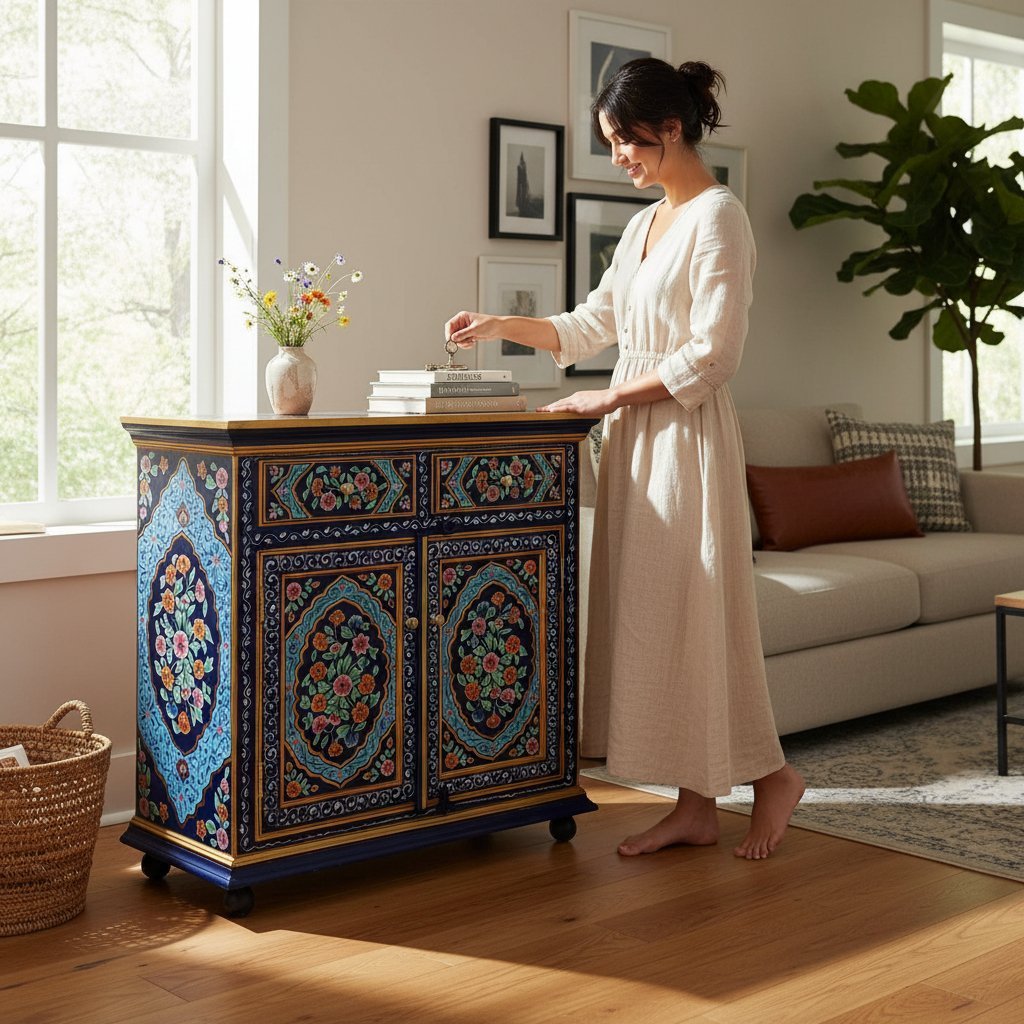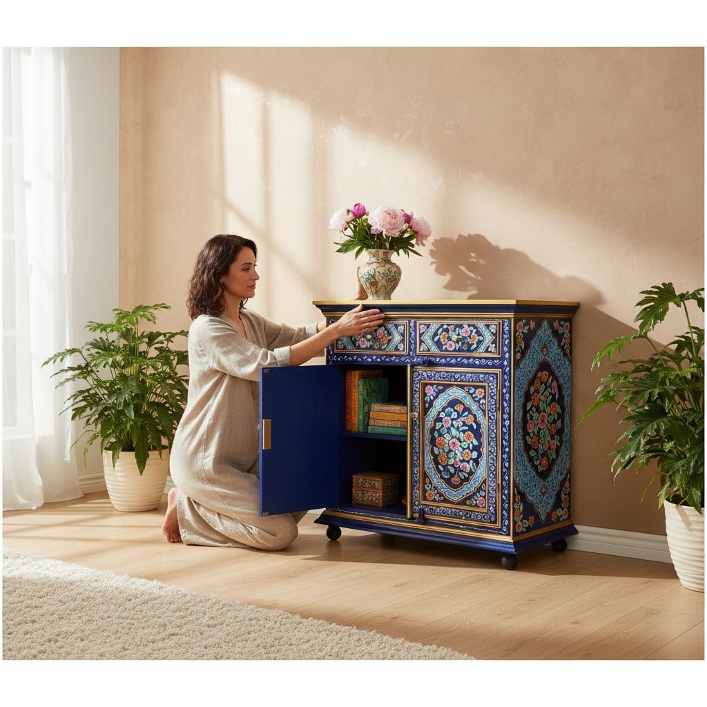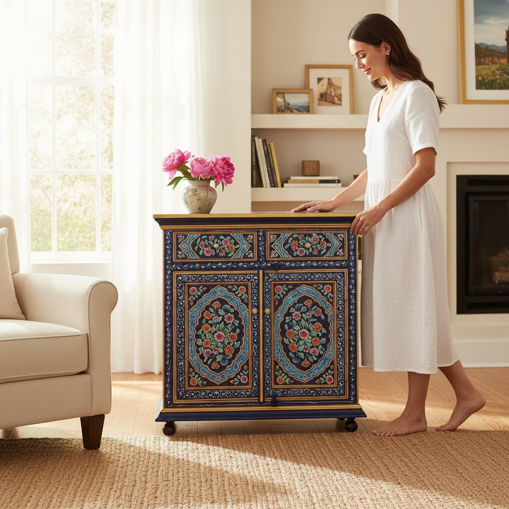 Hand Painted Wooden Cabinet Storage for Living Room