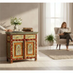 Brand : Vm Antique Decor Material : Solid Wood Dimension : L 60.96 × W 30.48 × H 76.2 cm Finish : Handpainted Glossy Colour : Multicolor Gold Assembly : Assembly Required Country of Origin : India Care : Clean Surfaces With a Dry Cloth.