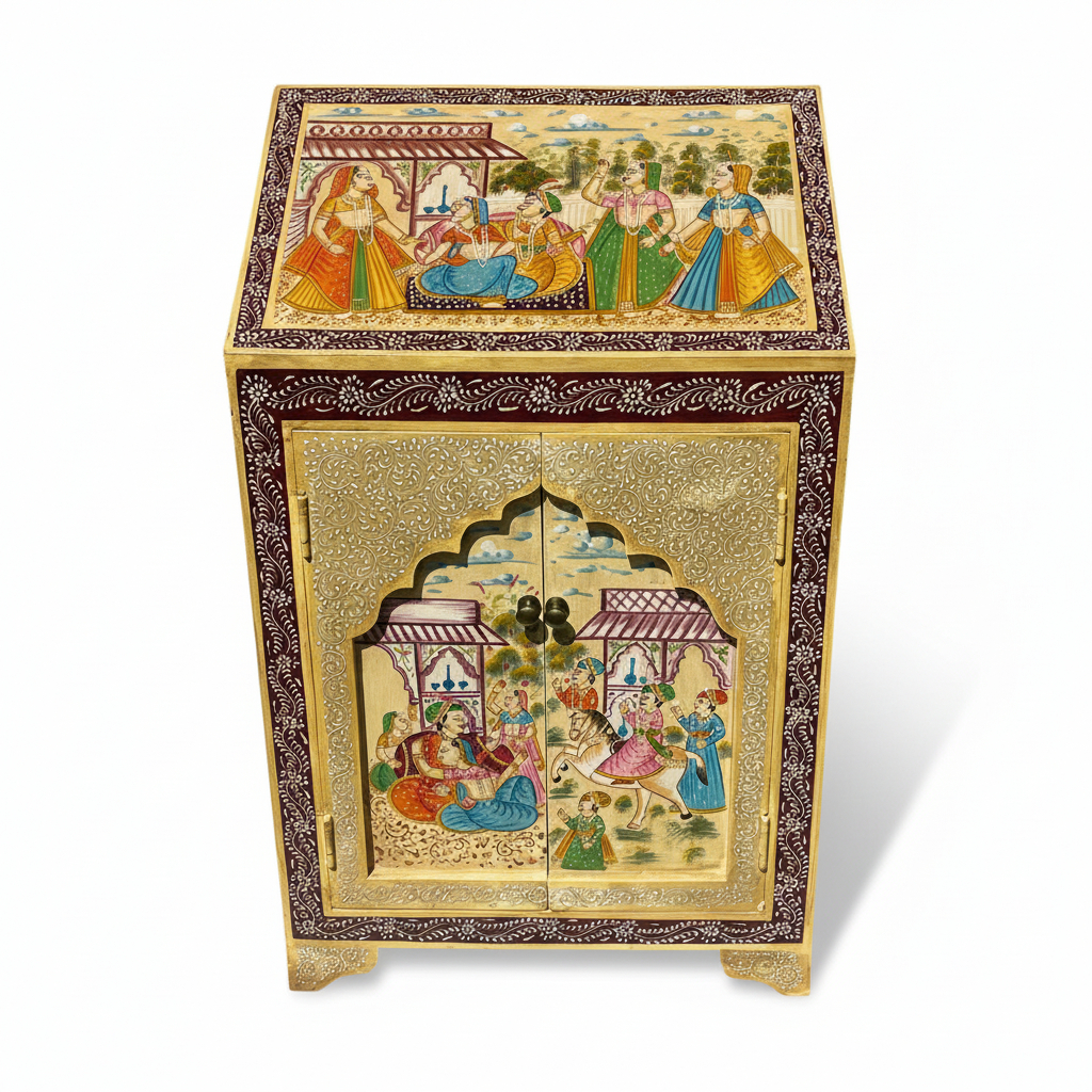 Hand Carved Wooden Bedside Dressing Table with Drawers