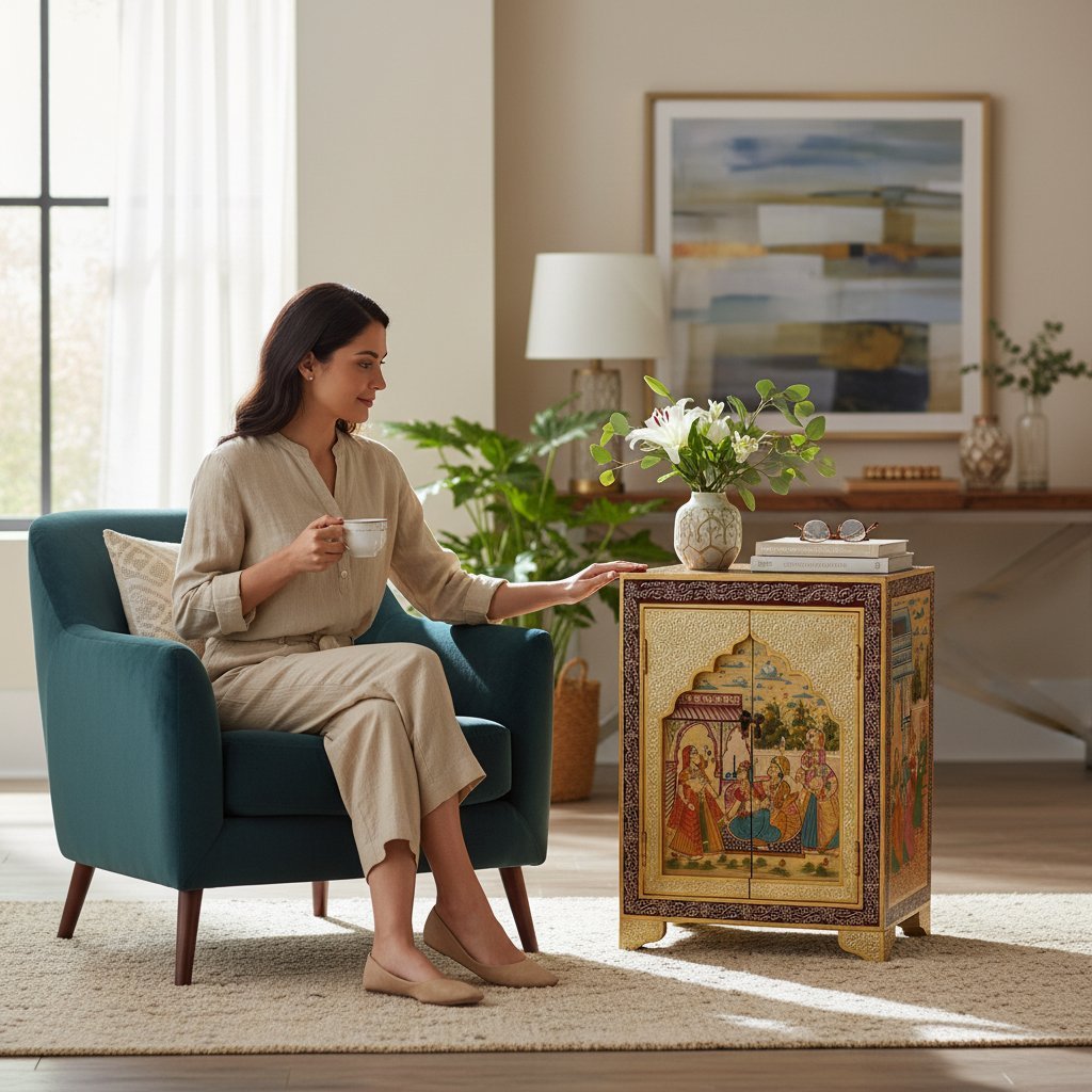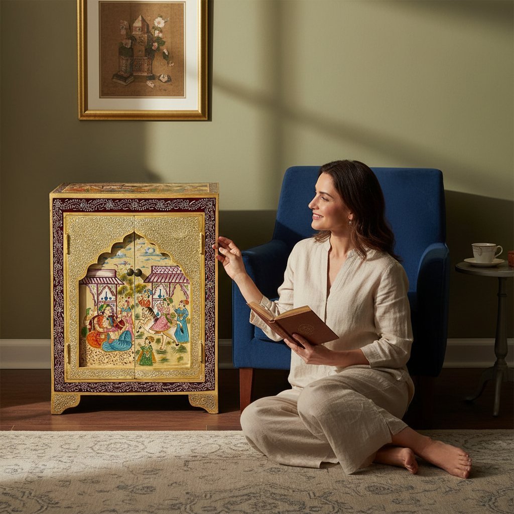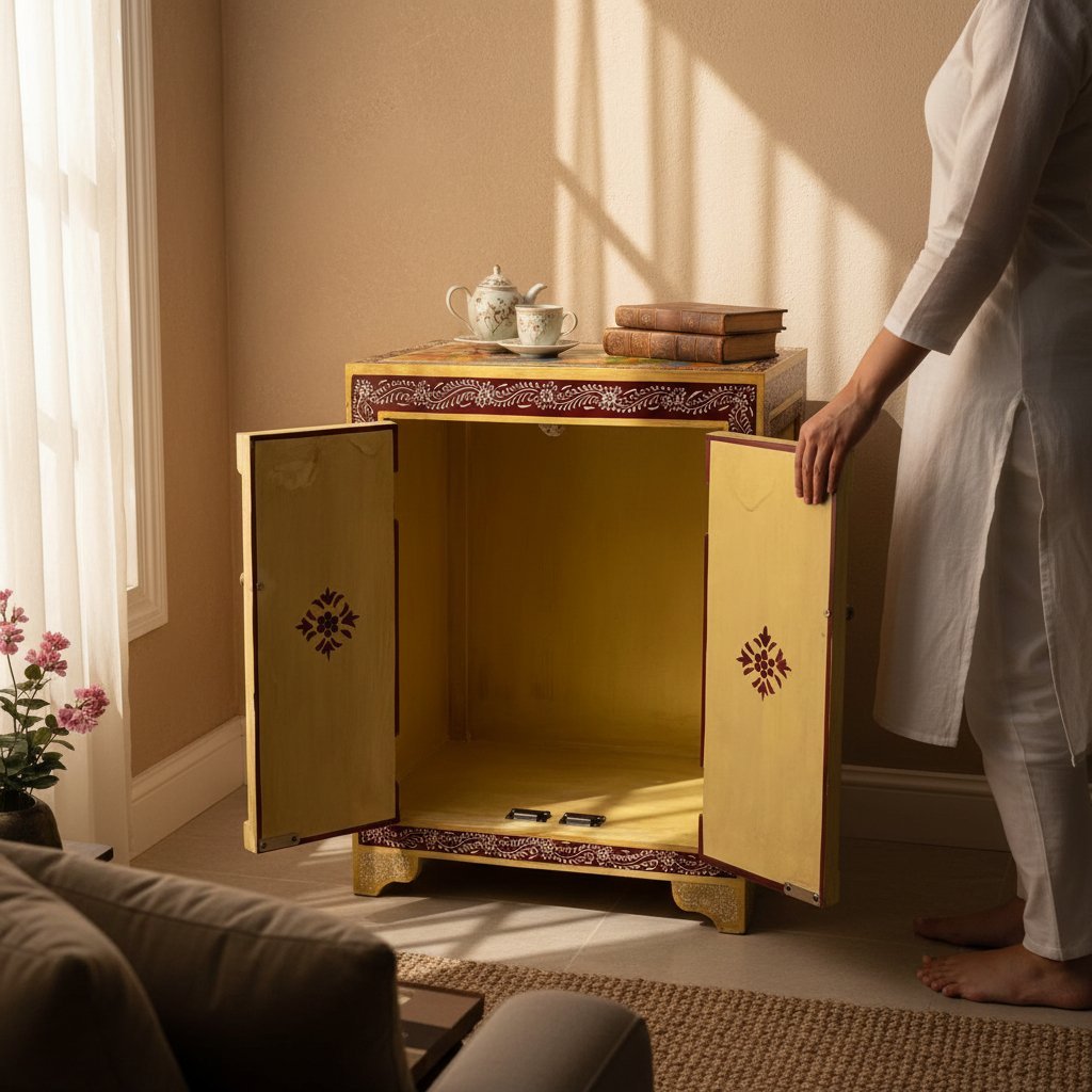 Brand : Vm Antique Decor Material : Solid Wood Colour-Natural Dimensions:-45x30x40 cm Wipe clean with soft cloth. Avoid chemical cleaners No Assembly required Made in India