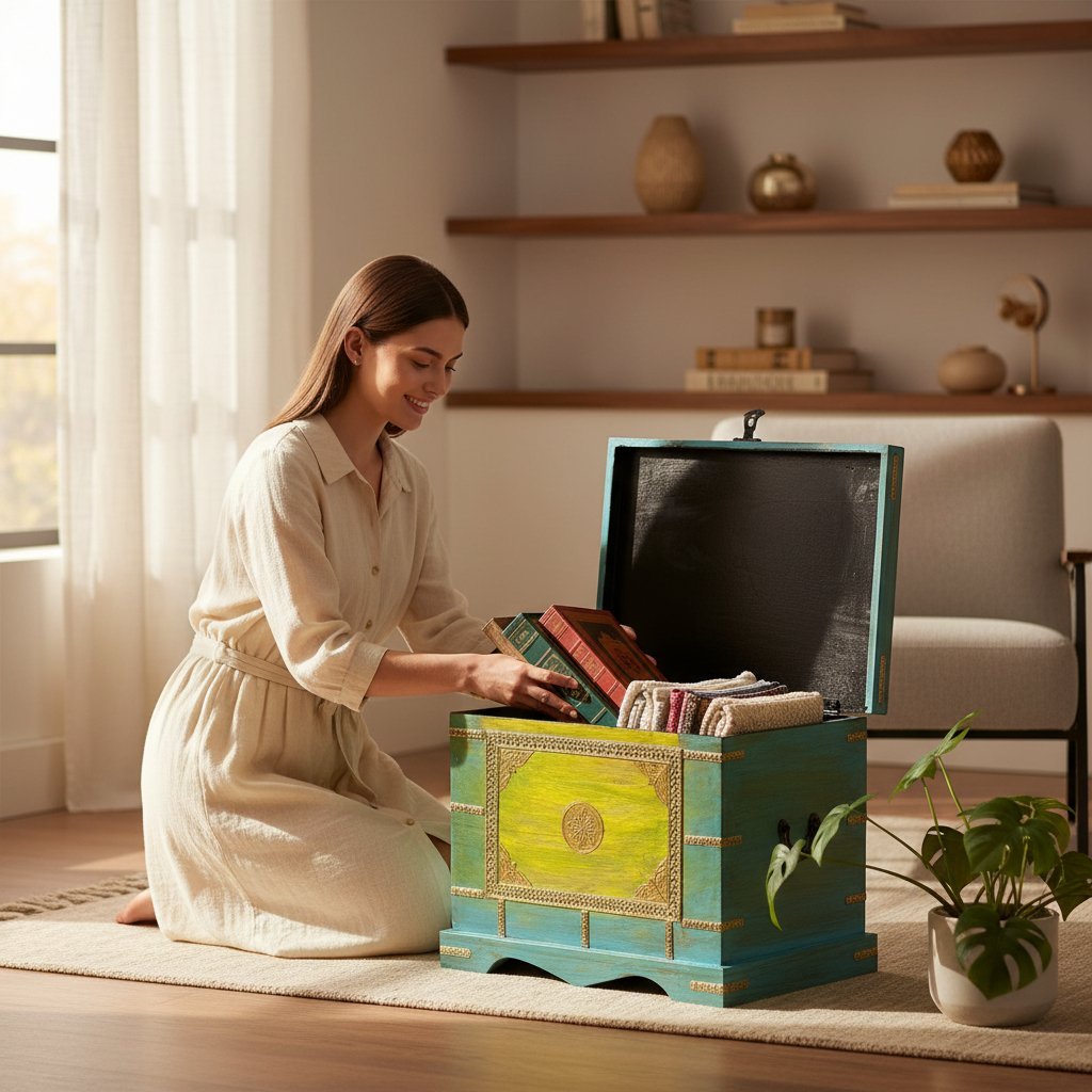 Be the first to review “Wooden Painted Brass Trunk Storage Box” Cancel reply