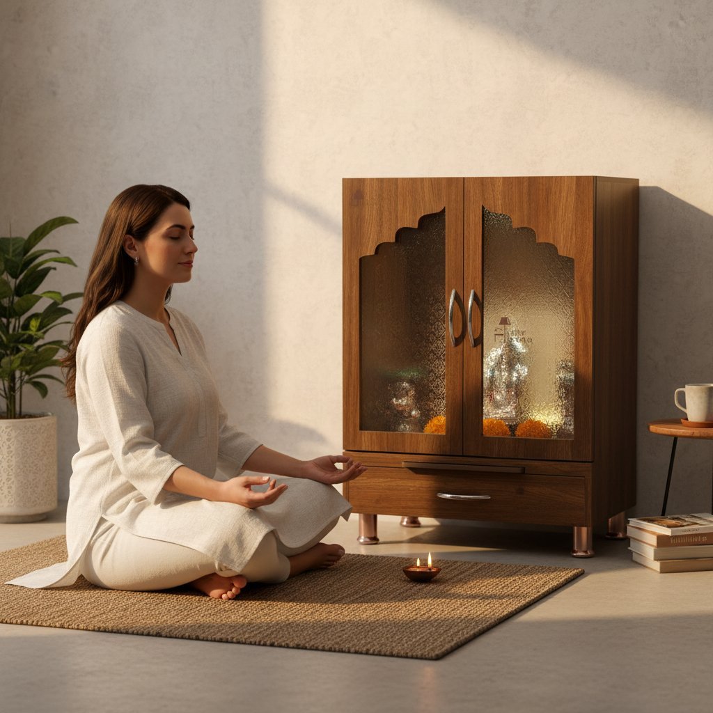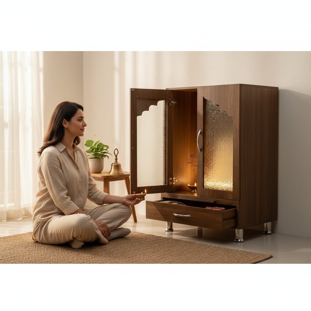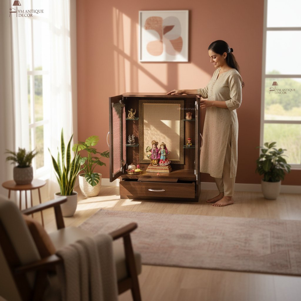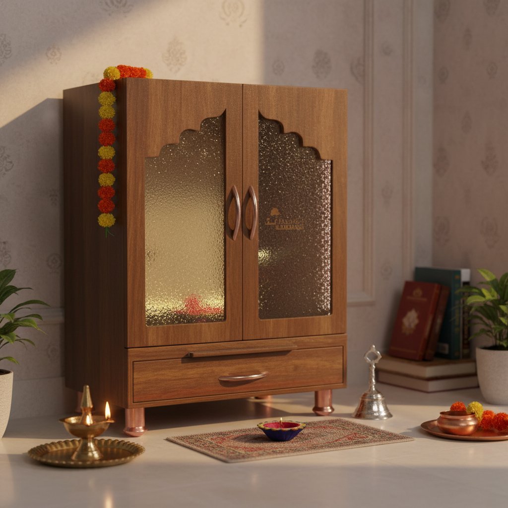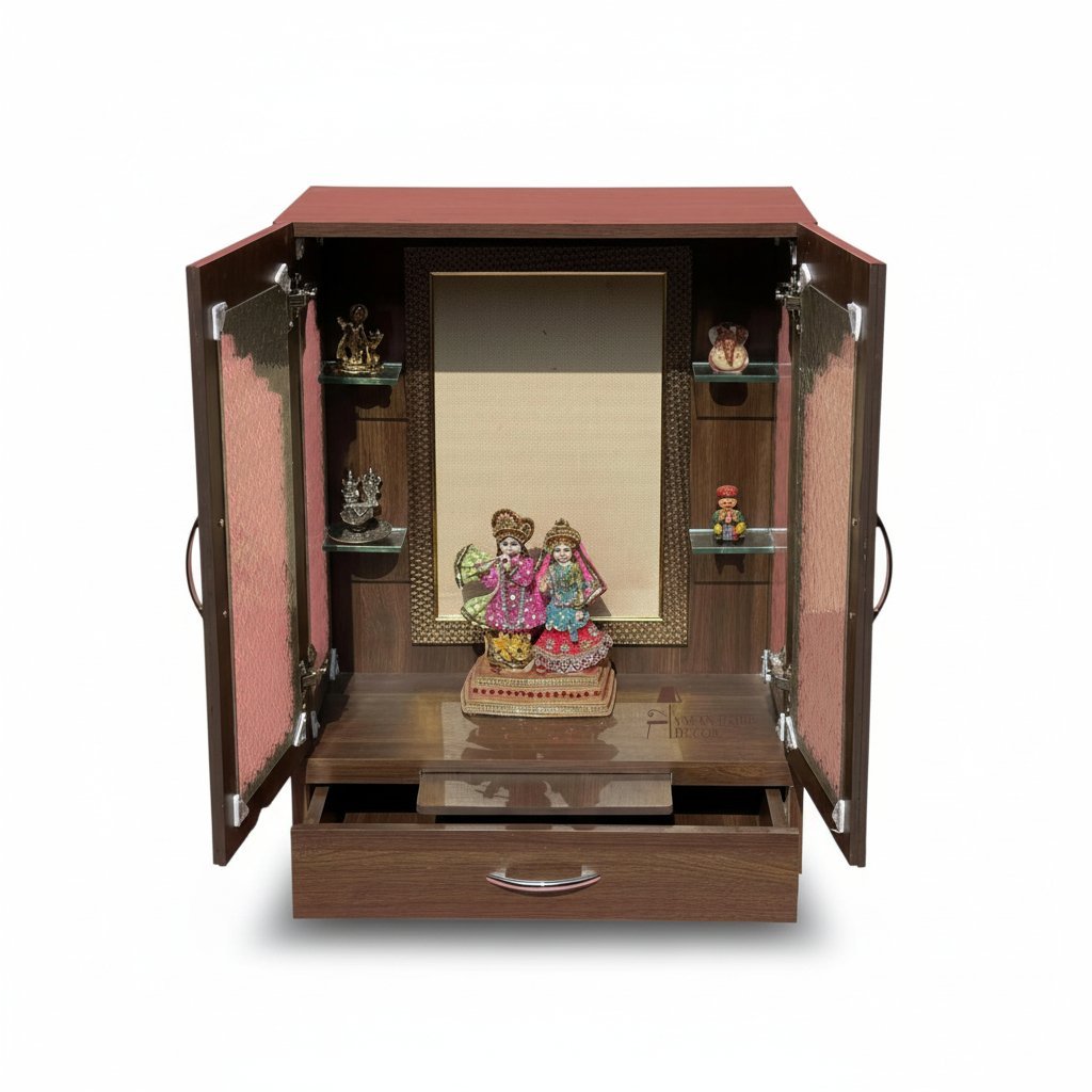 Wooden Temple Pooja Mandir Decor With Cabinet