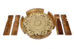 Colour – Walnut Size:Length: 35.4” | Width: 35.4” | Height: 13.7” Wipe clean with soft cloth. Avoid chemical cleaners Assembly required Made in India