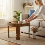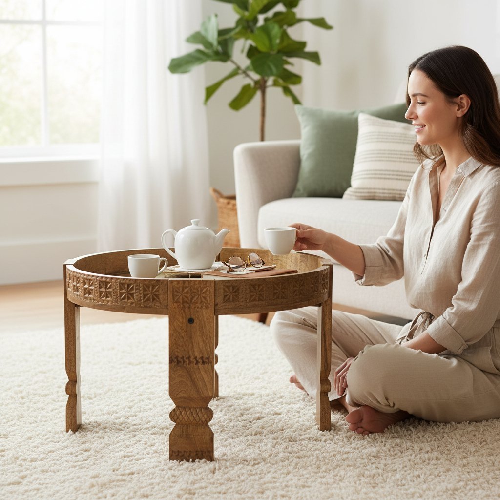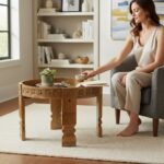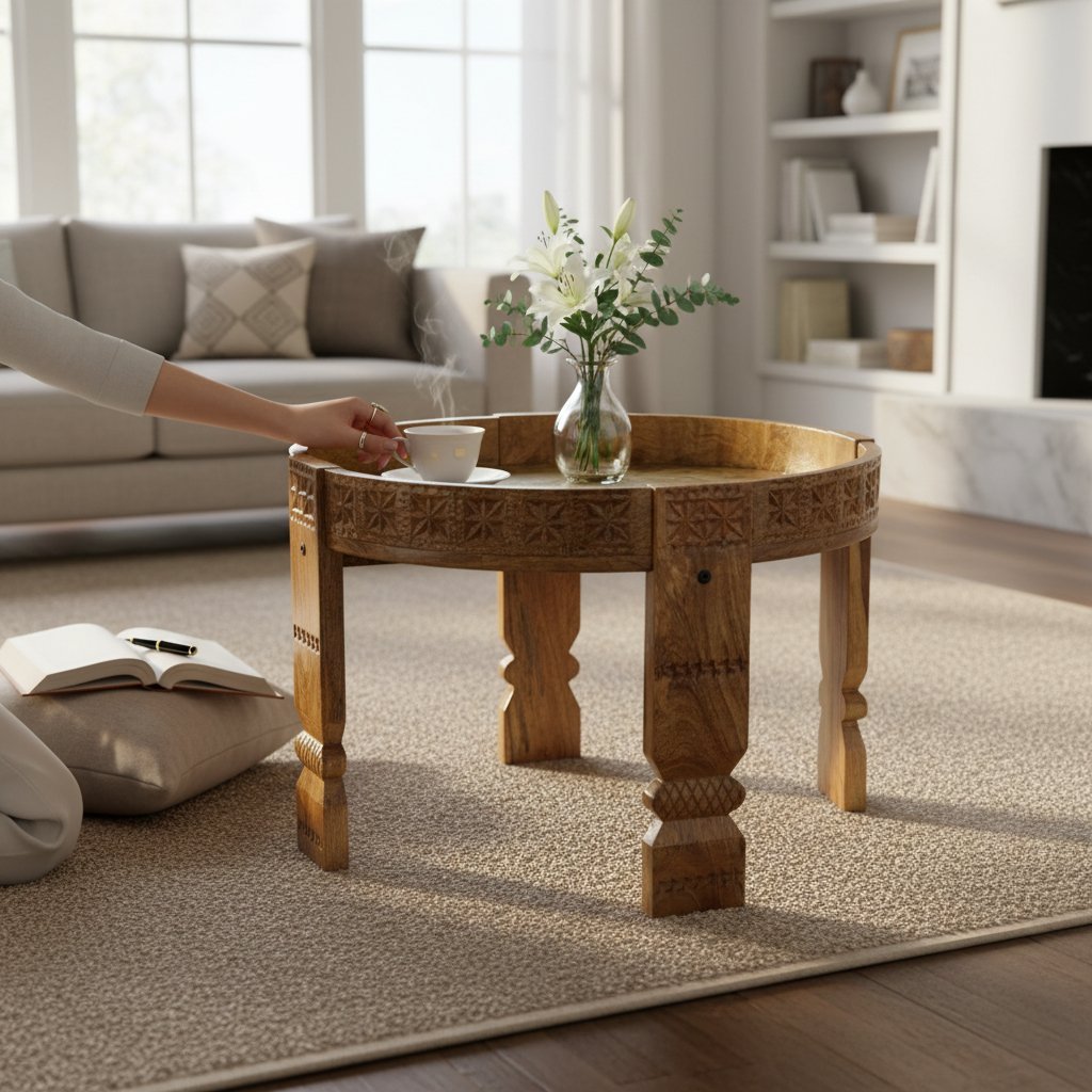 Solid Wood Round Drum Coffee Table – Walnut Finish