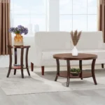 Home Coffee Table Wooden Round Coffee Table with Shelf