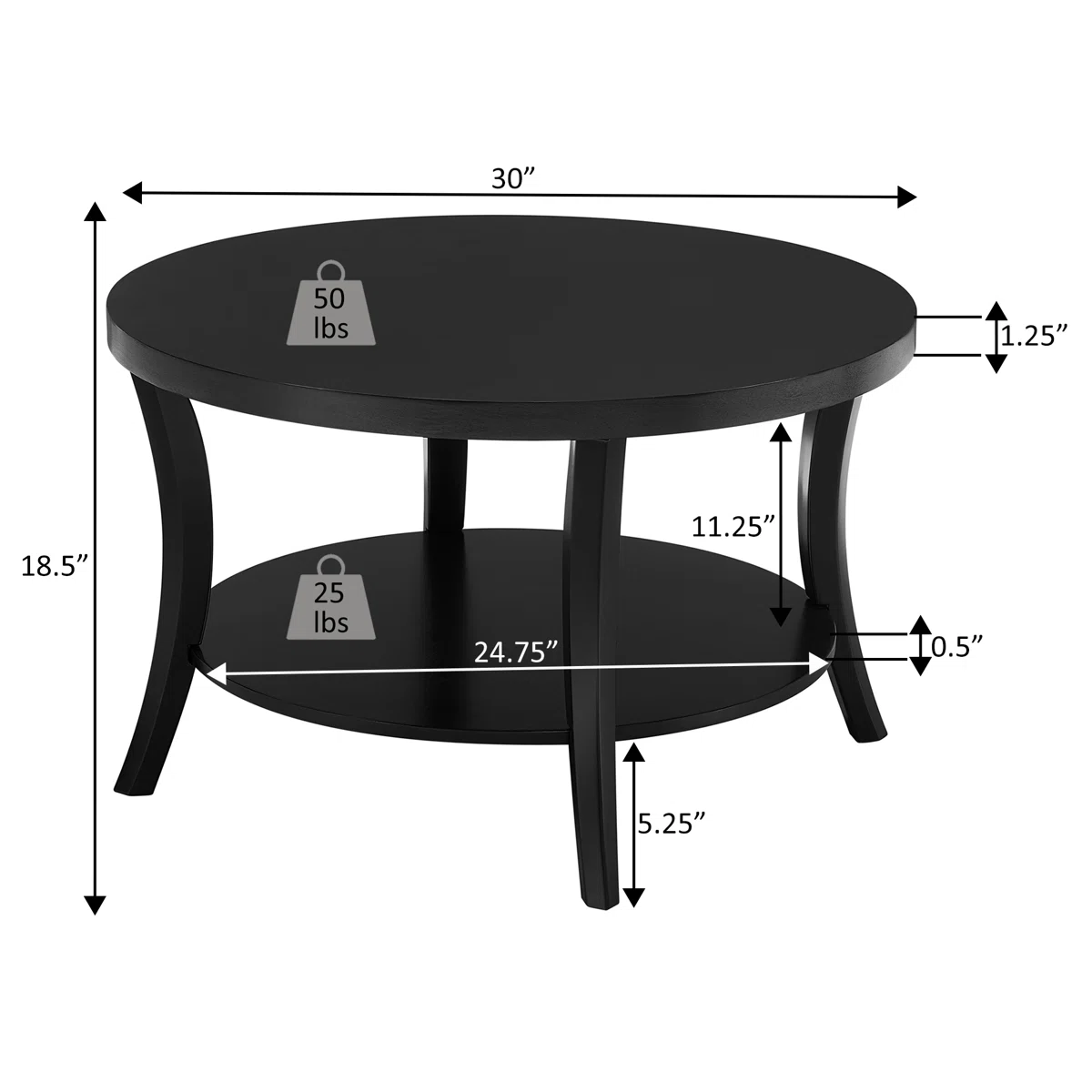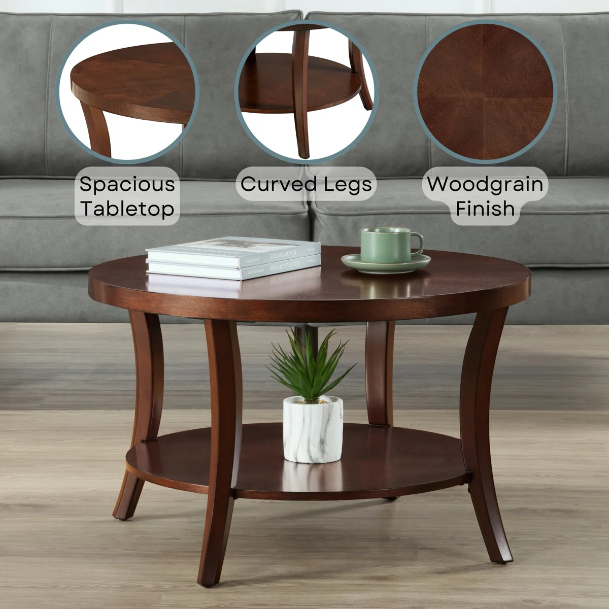 Wooden Round Coffee Table with Shelf