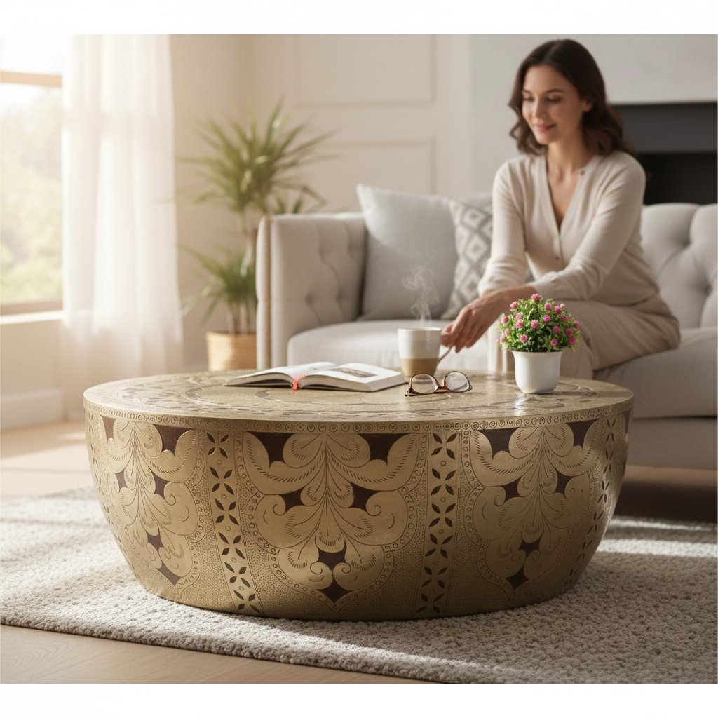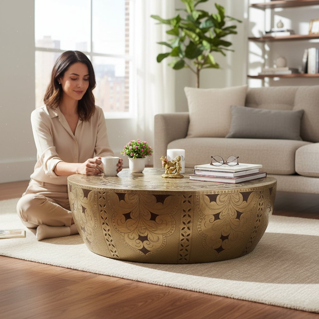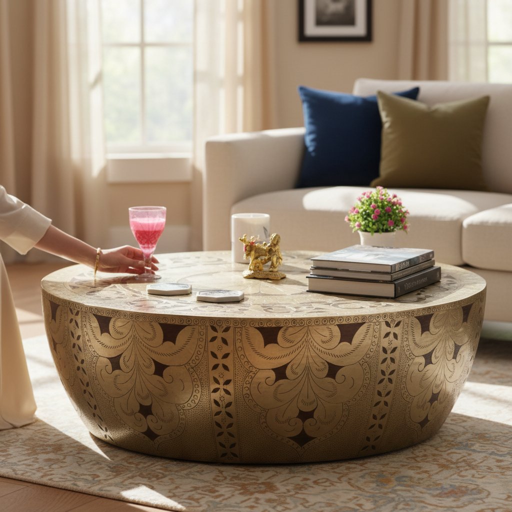 Wooden Round Drum Coffee Table