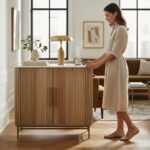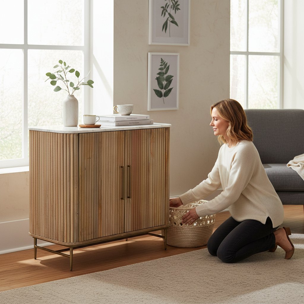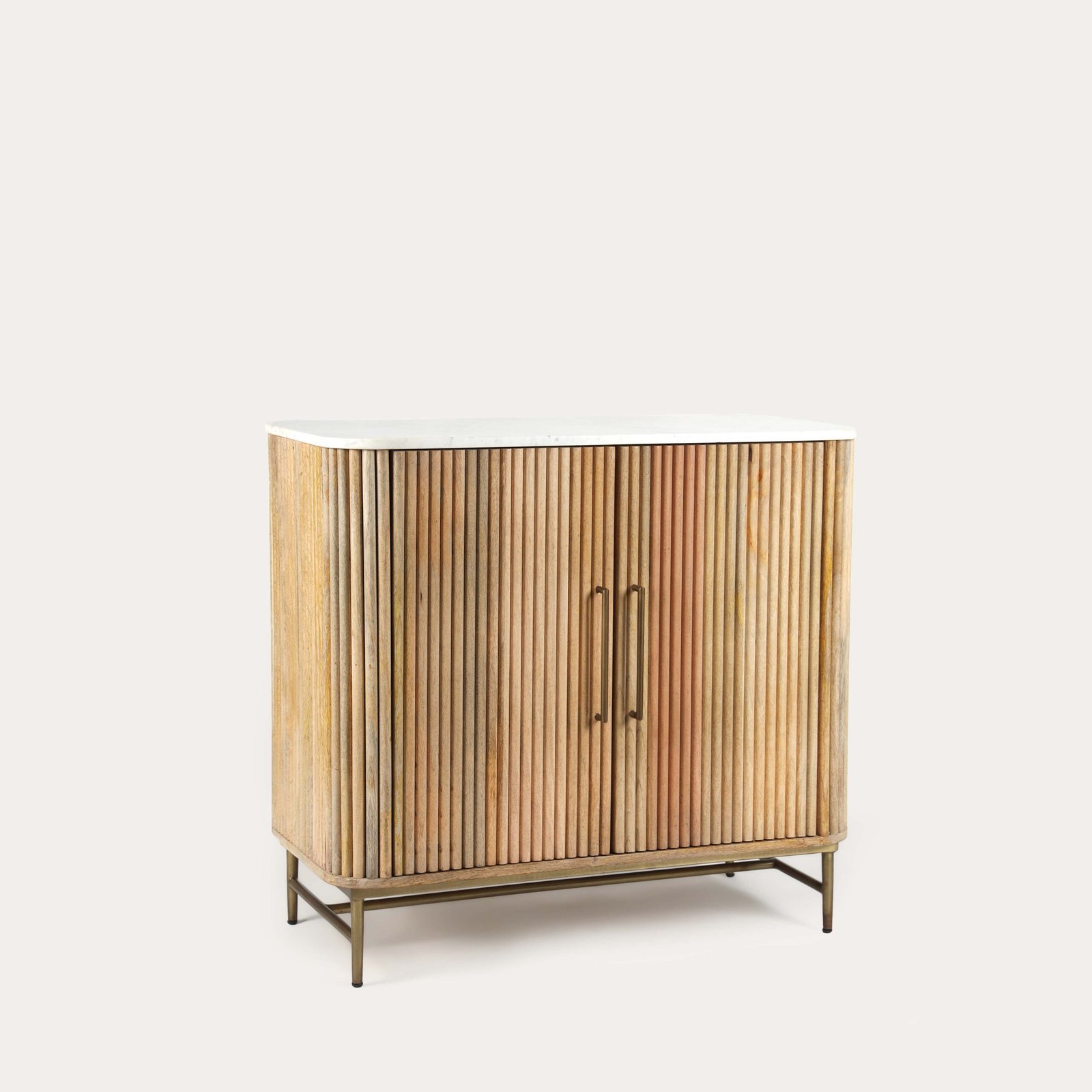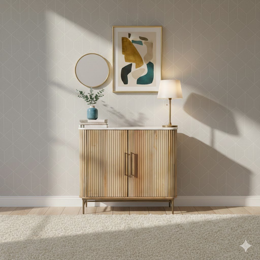 This compact wooden sideboard is the perfect blend of style and practicality. Designed with elegant ribbed doors and a luxurious black marble top, it adds a modern yet timeless touch to any interior. The spacious cupboard with shelving inside provides ample storage for dinnerware, glassware, or everyday essentials, while its sleek design makes it suitable for smaller dining rooms, living areas, or hallways. A versatile piece that enhances both functionality and décor.
