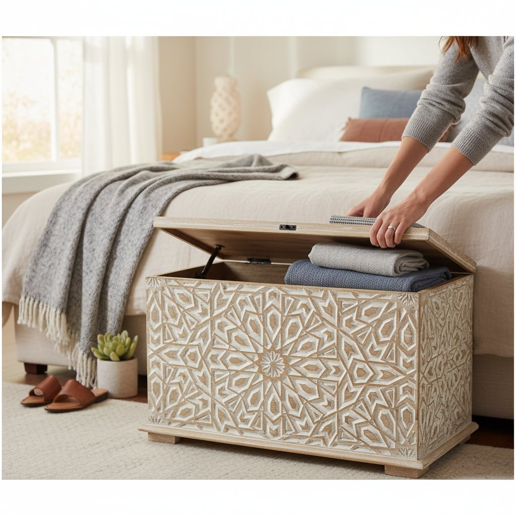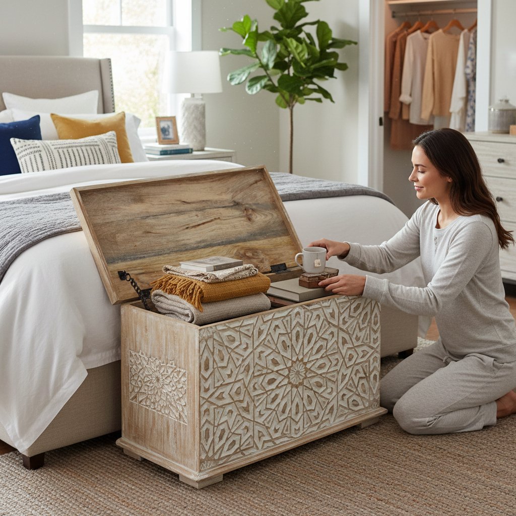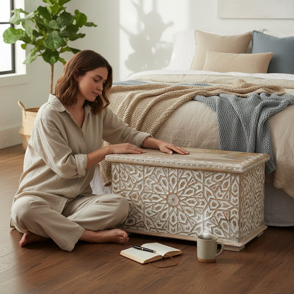 Wooden Painted Trunk Box Storage ₹45,999 Original price was: ₹45,999.₹35,999Current price is: ₹35,999.