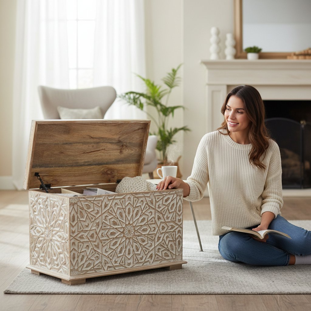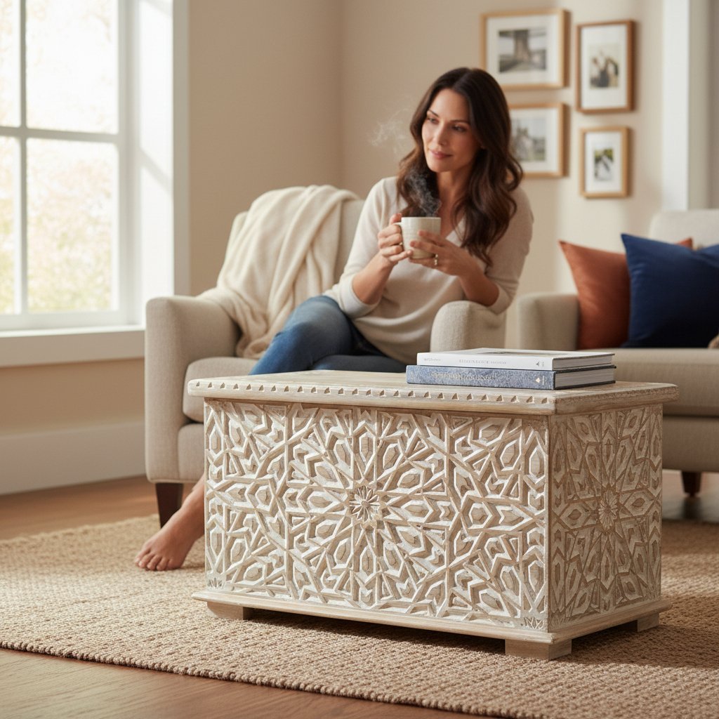 Home Coffee Table Wooden Trunk Chest Box
