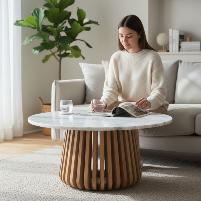 Wooden Elegant Marble-Style Coffee Table