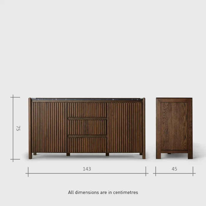 Bring refined elegance and practical storage into your home with this modern wooden sideboard. Designed with a ribbed front detail and finished with a luxurious black marble top, it strikes the perfect balance between style and functionality. Featuring spacious cupboards and smooth drawers, it provides ample room for storing dinnerware, glassware, or everyday essentials. Ideal for dining rooms, living areas, or hallways, this sideboard is both a statement piece and a versatile storage solution.