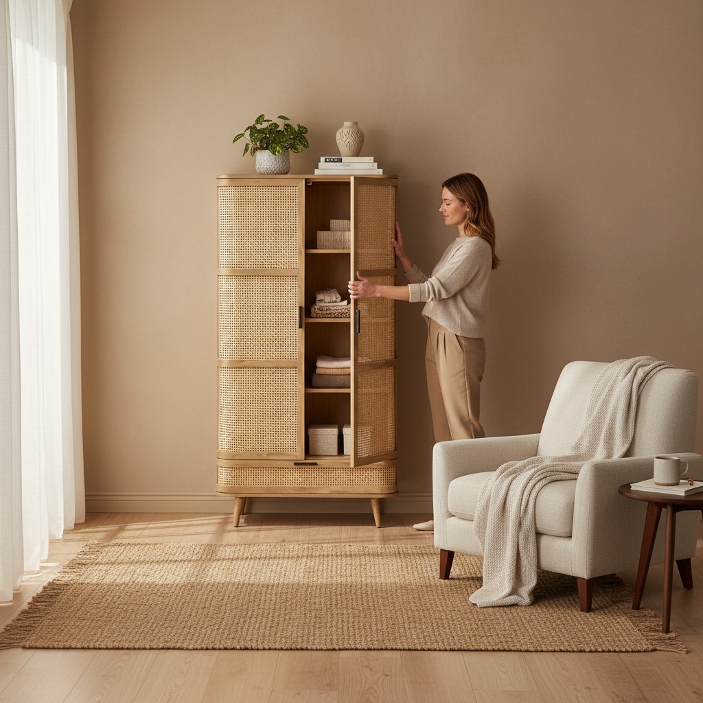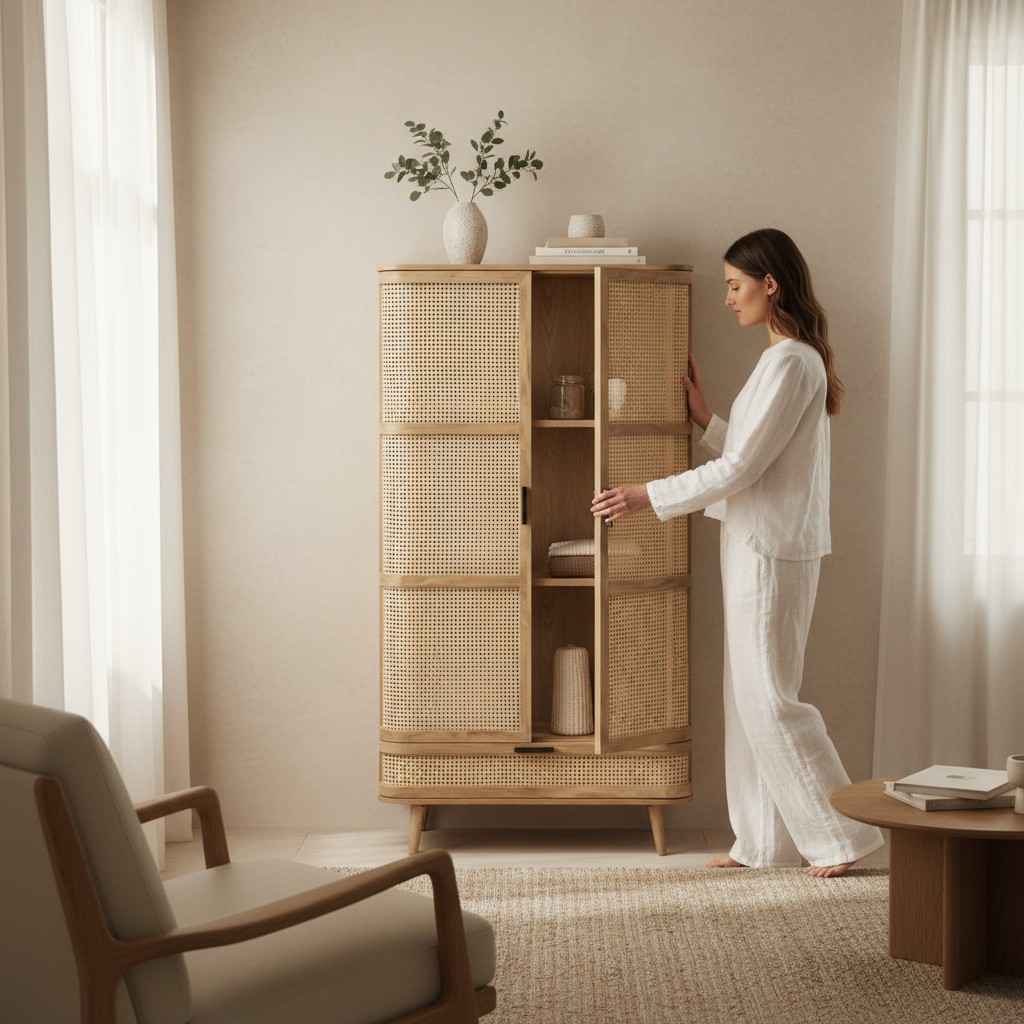 Wooden Cupboard Storage Cane