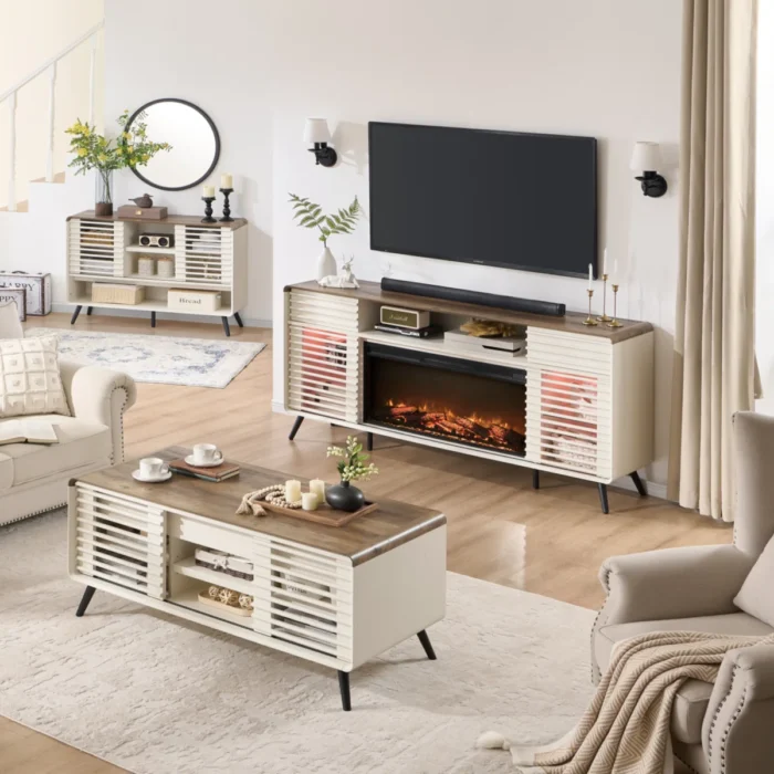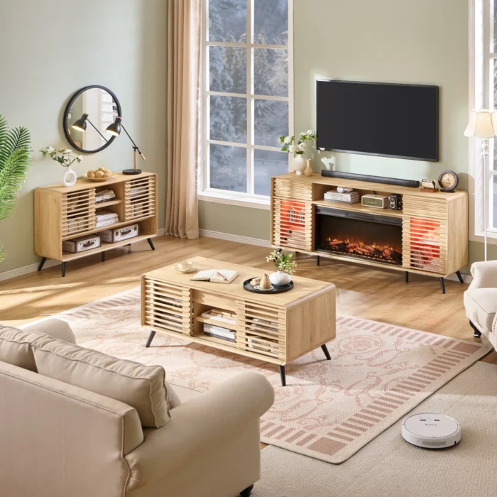 Wooden Coffee Table with Sliding Door & Storage Shelf – Modern Center Table for Living Room ₹20,000 Original price was: ₹20,000.₹14,999Current price is: ₹14,999.