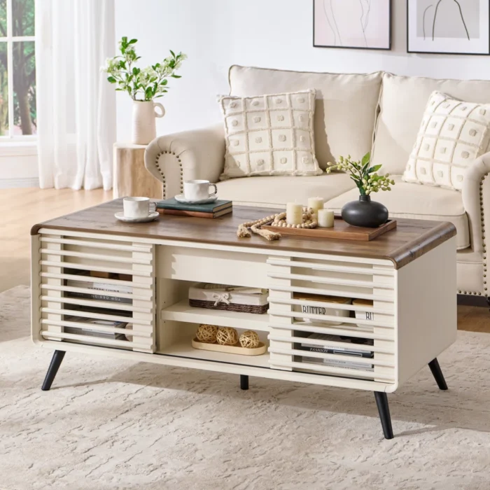Lift Top Wooden Coffee Table with Hidden Storage & Shelves – Modern Center Table for Living Room