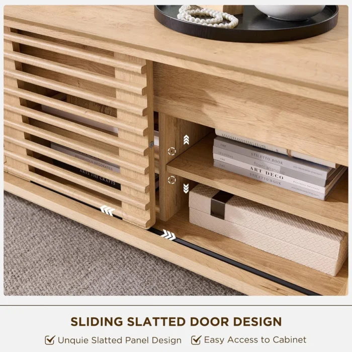 Wooden Coffee Table with Sliding Door & Storage Shelf – Modern Center Table for Living Room
