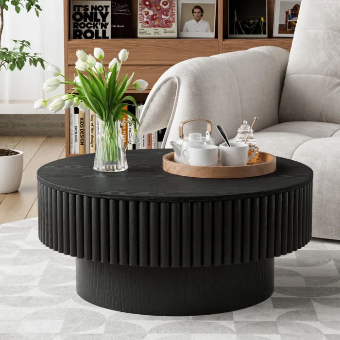 Be the first to review “Modern Black Round Coffee Table with Fluted Base” Cancel reply