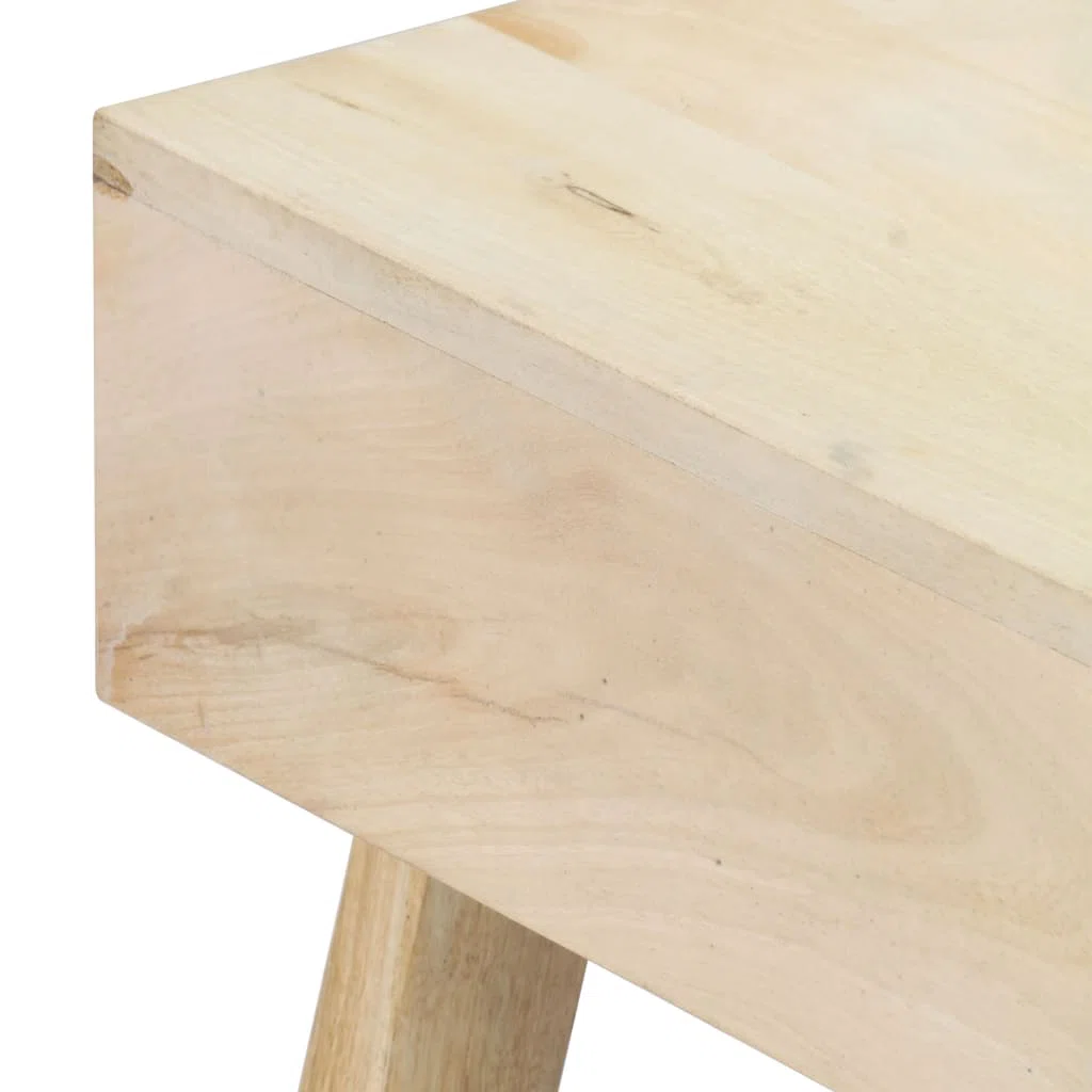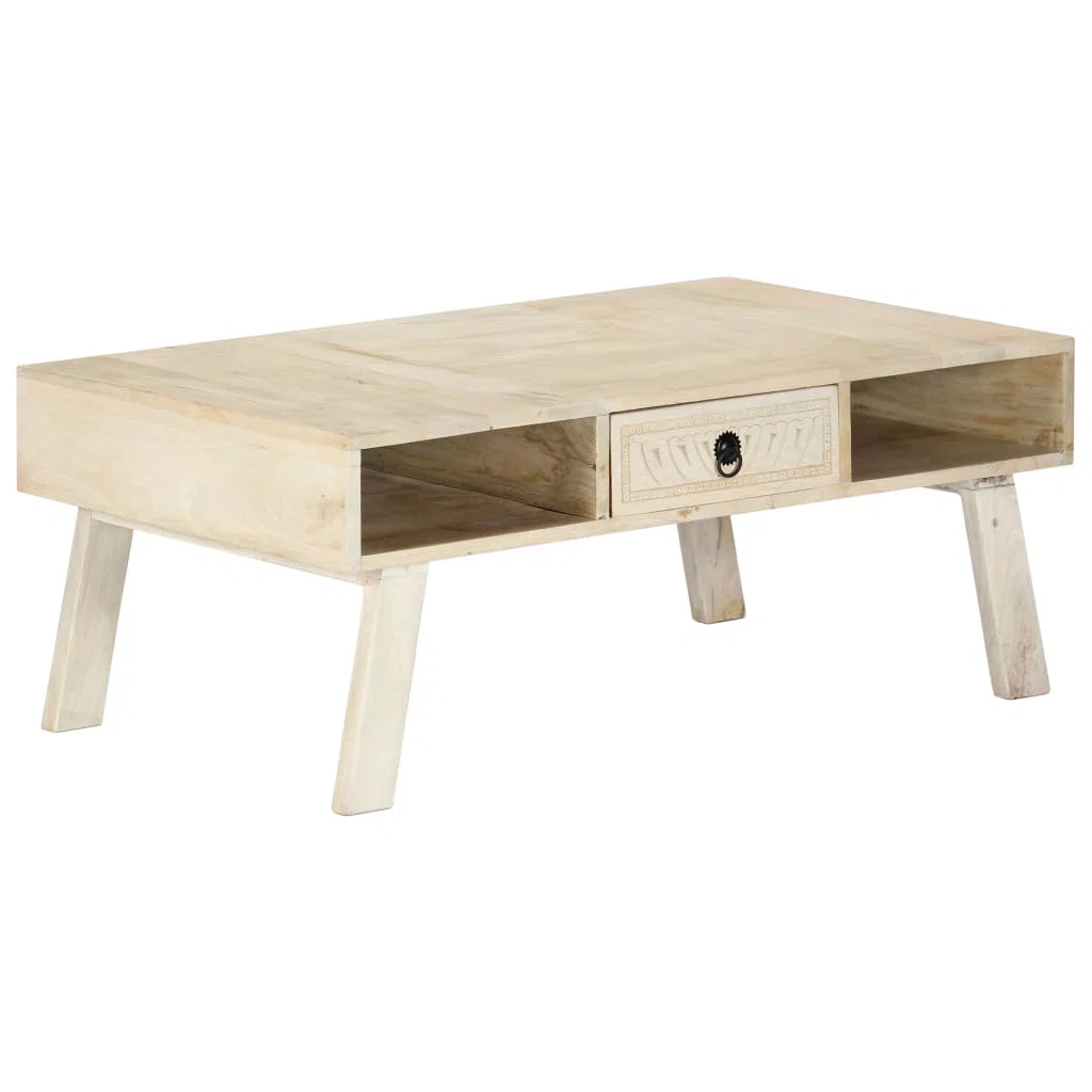Bring elegance and functionality to your living space with this solid mango wood coffee table. Designed in a natural finish, it features 1 carved drawer and 2 open shelves for storing magazines, remotes, or décor items. With its sturdy angled legs and minimalist look, this table is a perfect fit for both modern and traditional interiors.