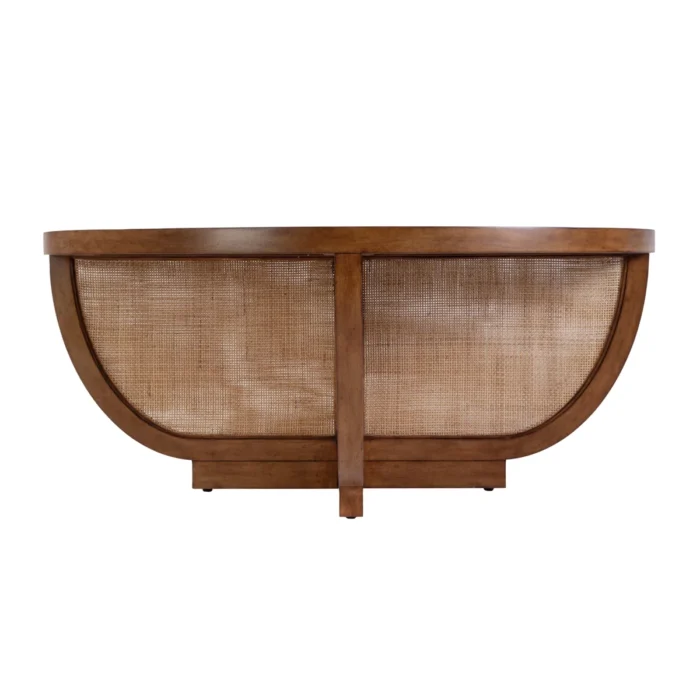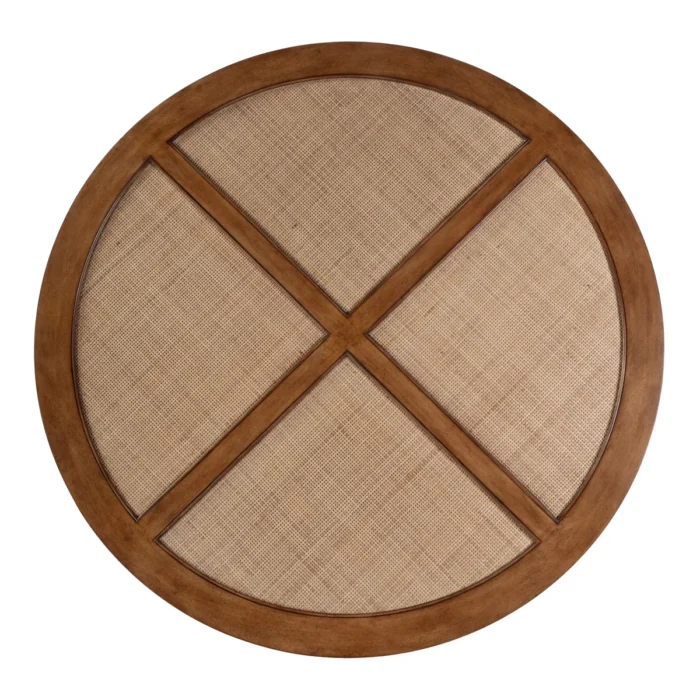 Solid Wood Cane Round Coffee Table with Rattan Detailing – 42 Inch