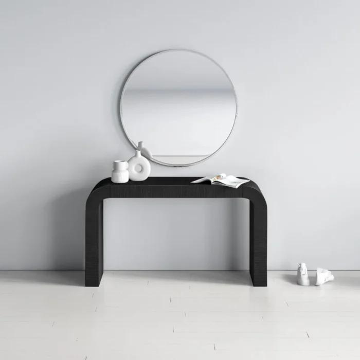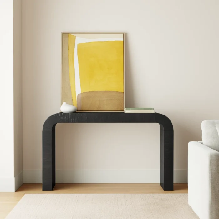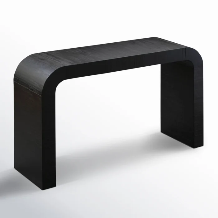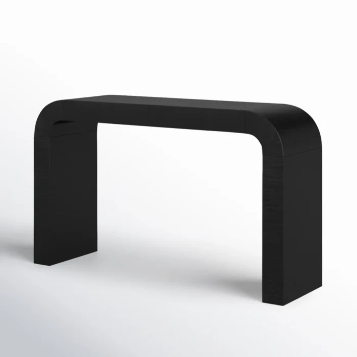 Elevate your interiors with this modern handcrafted solid wood console table, designed with smooth curved edges and a sleek matte black finish. Perfect for use as an entryway table, hallway console, sofa back table, or display table, this piece blends minimalist design with sturdy craftsmanship. Its versatile size makes it ideal for Indian homes, adding functionality while enhancing décor style.