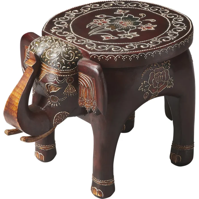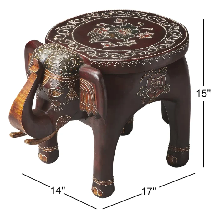 Add a royal charm to your home with this handcrafted wooden elephant stool, intricately hand-painted by skilled artisans. Designed in the shape of an elephant, this piece is not only a sturdy side table but also a unique décor accent. Its floral engravings, detailed handwork, and antique finish make it a perfect addition to your living room, bedroom, or traditional setup.